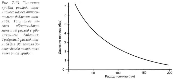 Потребность в топливе любого двигателя должна быть обеспечена системой тоштивоподачи. Система топливоподачи это топливный насос, регулятор давления топлива и топливопроводы. Система топливоснабжения должна быть готова выполнить запросы, в разумных пределах, дополнительных возможностей двигателя. Эта пределы требуют баланса между расходом насоса и его рабочим давлением. Особенность всех топливных насосов то, что они обеспечивают максимальный расход при наименьшем давлении. Максимальное давление насоса достигается тогда, когда выход насоса полностью закрыт. Другими словами, при расходе равном нулю. С другой стороны, максимальный расход насоса достигается тогда, когда насос работает без какого-либо сопротивления. Топливный насос системы впрыска - это насос объемного действия, который приводится электродвигателем постоянного тока. Когда насос заставляют работать с большей нагрузкой, обороты двигателя падают. Поскольку обороты двигателя падают, объем нагнетаемого топлива снижается. Для работы системы впрыска необходимо давление топлива 2,7 бара и более. Поэтому мы должны знать, вычислить, или измерить расход топлива при этом давлении.